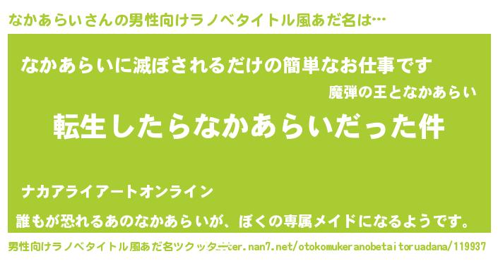 | 胡散臭い通販商品みたいなあだ名 | 『来世でも幸せになれる健康食品…その名も「なかあらい」』 |