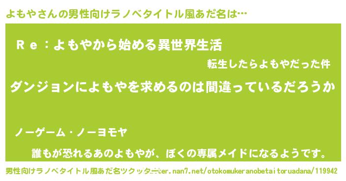| 女子向けラノベタイトル風あだ名 | 『よもやは平凡を望む』『闇のよもや』 |