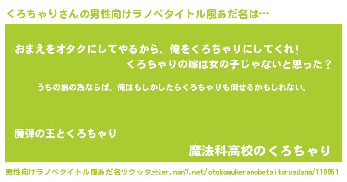 | 女子向けラノベタイトル風あだ名 | 『くろちゃりの婚約者』 |