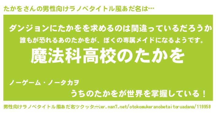 | 女子向けラノベタイトル風あだ名 | 『たかをアンティーク』『たかを恋絵巻』 |