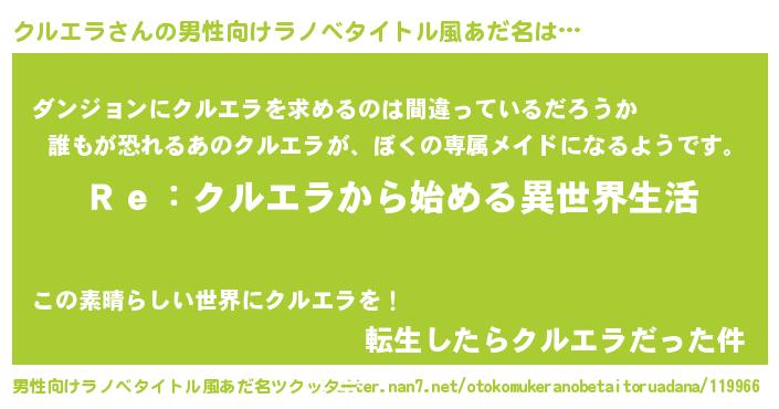 | 女子向けラノベタイトル風あだ名 | 『クルエラストレイドッグス』 |