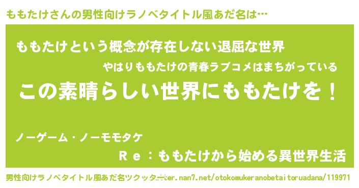 | ヒーロー風カッコイイあだ名 | 『仮面モモダー』『ネオモモタケ』 |