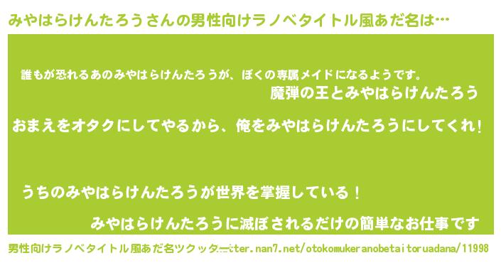 | ヘコむあだ名 | 『みやはらけんたろう(爆)』『みやっふぃ~』 |