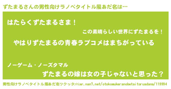 | 女子向けラノベタイトル風あだ名 | 『ずたまる伯爵の花嫁』『ずたまる恋絵巻』 |