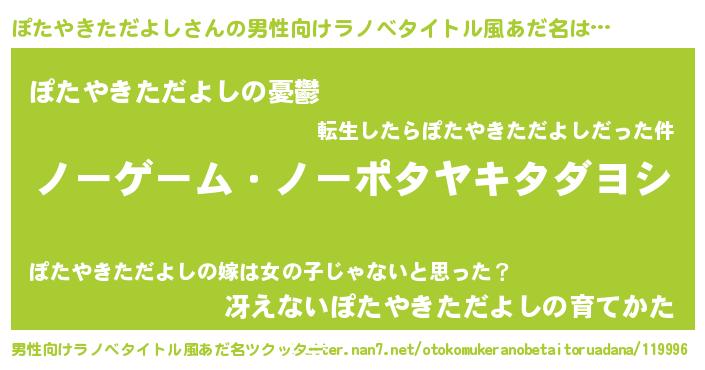 | 女子向けラノベタイトル風あだ名 | 『ぽたやきただよし恋絵巻』 |