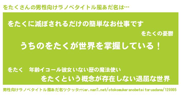 | ピコ太郎風あだ名 | 『ピコヲ郎』『ヲコ太郎』『ヲタ一郎』 |