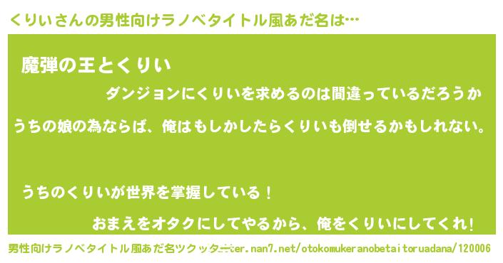 | 女子向けラノベタイトル風あだ名 | 『くりいの婚約者』『くりいは平凡を望む』 |