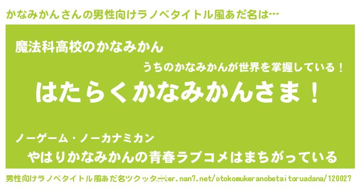 | 意味不明あだ名 | 『自称かなみかん』 |