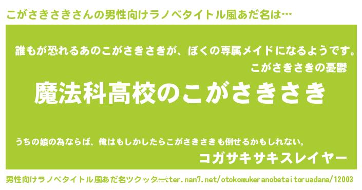 | ヘコむあだ名 | 『こがさきさき(笑)』『こがっふぃ~』 |