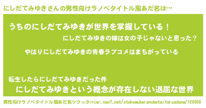 | 女子向けラノベタイトル風あだ名 | 『にしだてみゆきの雑貨屋さん』 |