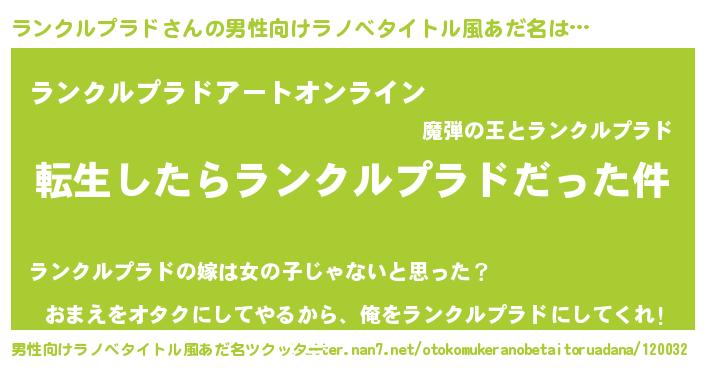 ランクルプラドさんの男性向けラノベタイトル風あだ名をツクッター!