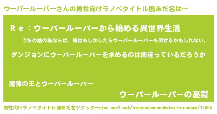 | 女子向けラノベタイトル風あだ名 | 『ウーパールーパーの卵を拾いまして』 |