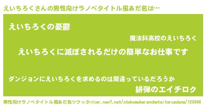 | 意味不明あだ名 | 『ペロリンえいちろく』『自称えいちろく』 |