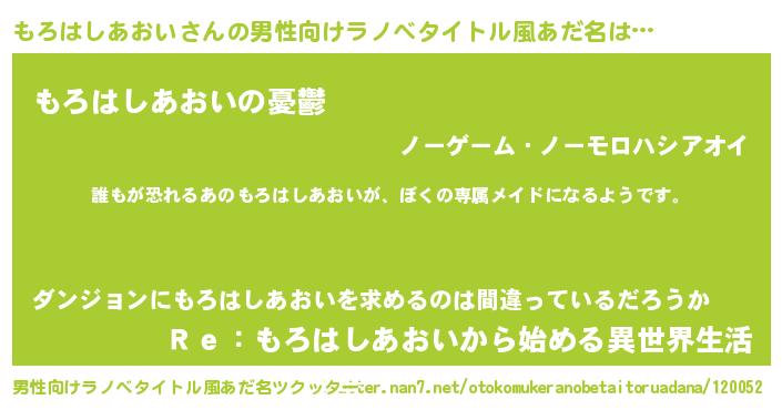 | 胡散臭い通販商品みたいなあだ名 | 『前代未聞の健康食品…その名も「もろはしあおい」』 |