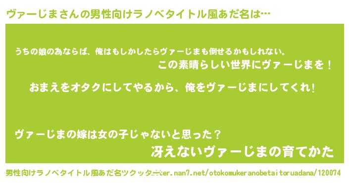 | 女子向けラノベタイトル風あだ名 | 『ヴァーじま夫妻のなれそめ』 |