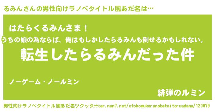 | 女子向けラノベタイトル風あだ名 | 『婚約破棄系悪役るみんに転生したので、保身に走りました。』 |