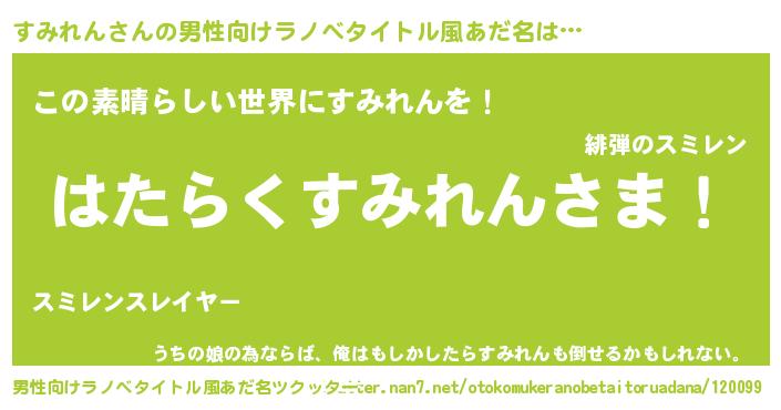 | 意味不明あだ名 | 『住所不定無職すみれん(95歳)』 |
