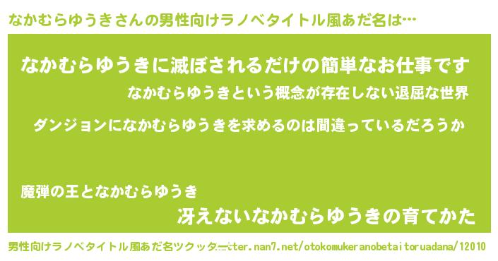 | 女子向けラノベタイトル風あだ名 | 『なかむらゆうきは平凡を望む』 |