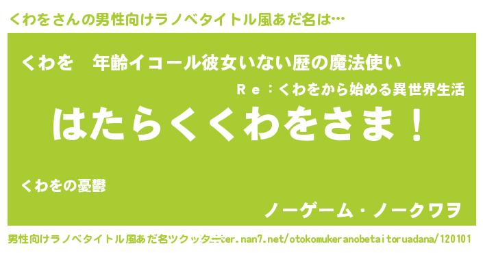 | ヒーロー風カッコイイあだ名 | 『友情の使者くわを』『スーパークワヲ』 |