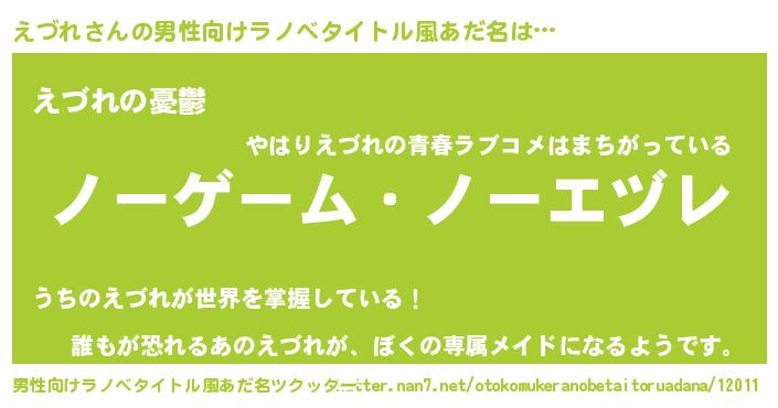 | 女子向けラノベタイトル風あだ名 | 『死神えづれの再婚』『えづれ伯爵の花嫁』 |