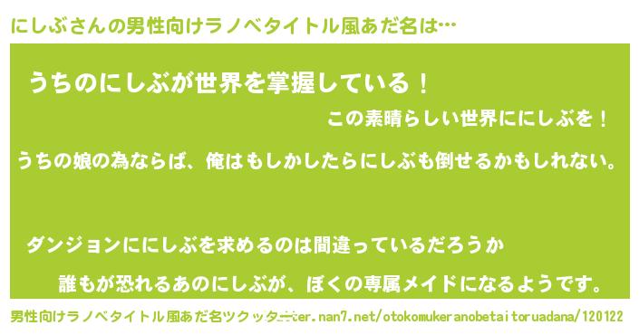 | 胡散臭い通販商品みたいなあだ名 | 『運命の人と巡り会える高級そうな壺…その名も「にしぶ」』 |