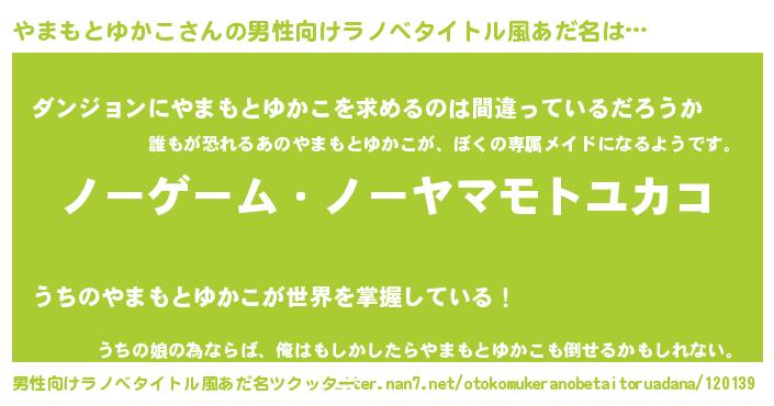 | 女子向けラノベタイトル風あだ名 | 『死神やまもとゆかこの再婚』 |