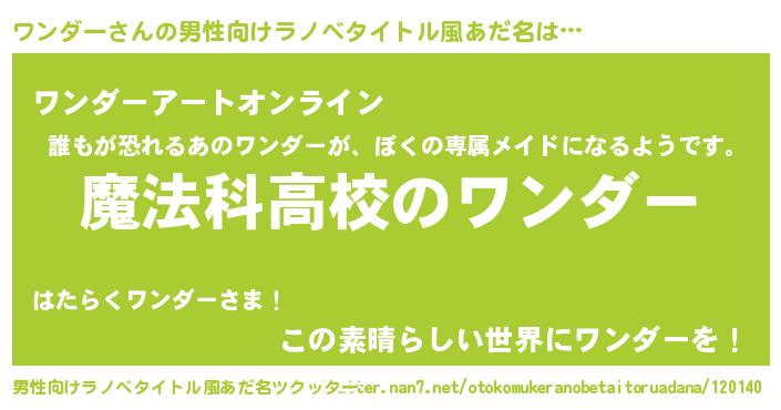 | 女子向けラノベタイトル風あだ名 | 『ワンダーなんてお断りですっ。』 |