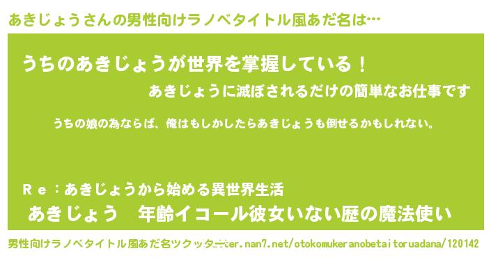 | 女子向けラノベタイトル風あだ名 | 『あきじょうの婚約者』『闇のあきじょう』 |