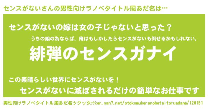 | 胡散臭い通販商品みたいなあだ名 | 『信頼と実績のネックレス…その名も「センスがない」』 |