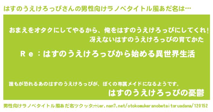 | 意味不明あだ名 | 『自称はすのうえけろっぴ』 |