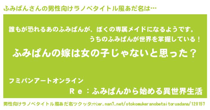 | 女子向けラノベタイトル風あだ名 | 『ふみぱん様がみてる』 |