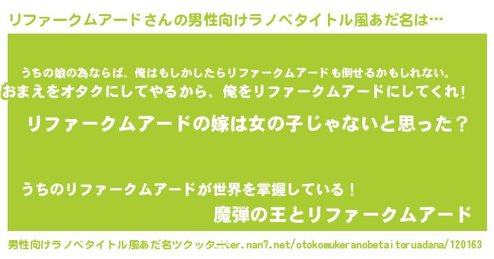 | 女子向けラノベタイトル風あだ名 | 『リファークムアード様がみてる』 |