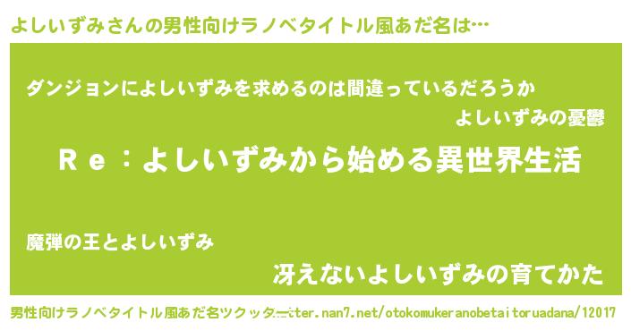 | 女子向けラノベタイトル風あだ名 | 『闇のよしいずみ』 |