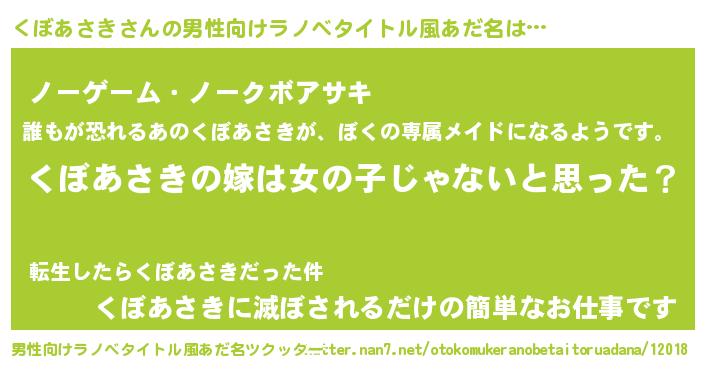 | 意味不明あだ名 | 『とにかく怪しいくぼあさき』 |