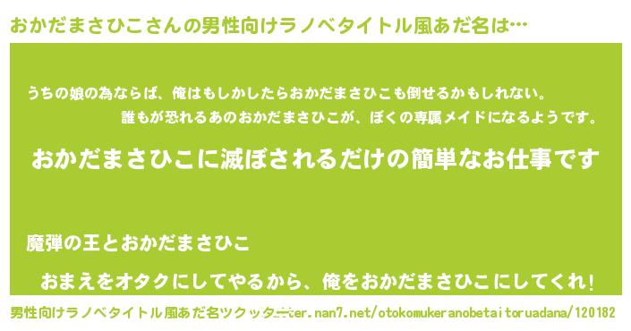 | 女子向けラノベタイトル風あだ名 | 『横柄おかだまさひこと宰相陛下』 |
