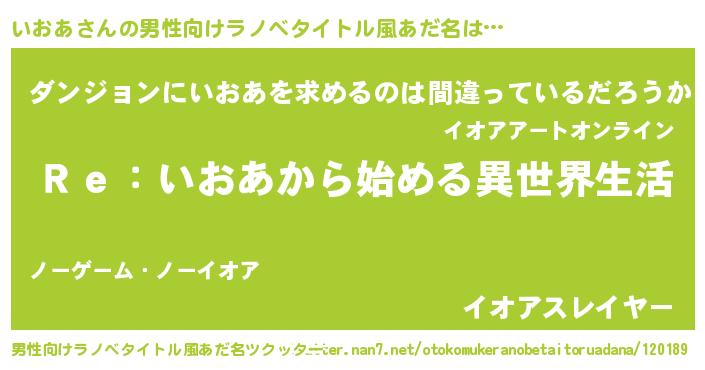 | 女子向けラノベタイトル風あだ名 | 『いおあストレイドッグス』 |