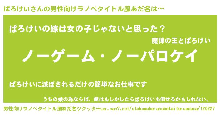 | 女子向けラノベタイトル風あだ名 | 『死神ぱろけいの再婚』 |