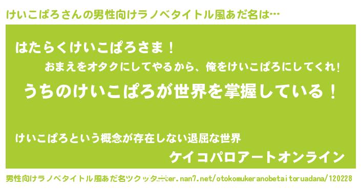 | 胡散臭い通販商品みたいなあだ名 | 『億万長者になれる霊験あらたかなお札…その名も「けいこぱろ」』 |