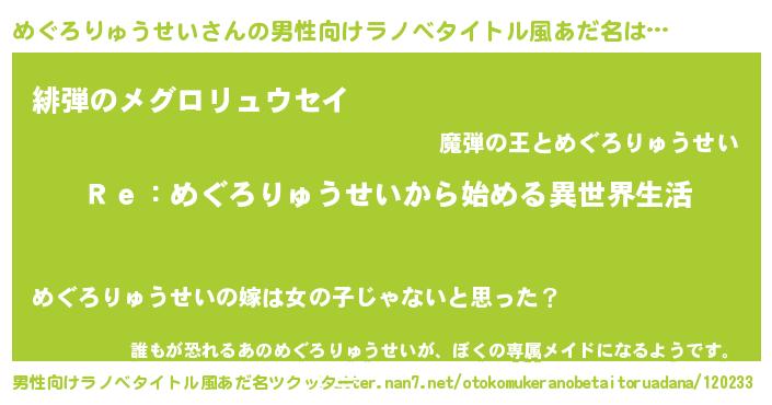 | 意味不明あだ名 | 『自称めぐろりゅうせい』 |
