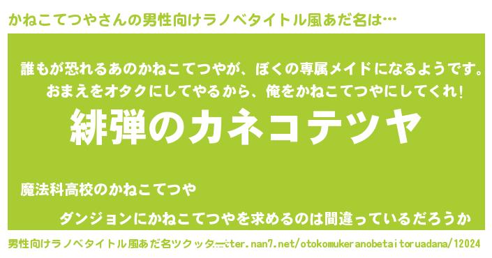| 女子向けラノベタイトル風あだ名 | 『シンデレラかねこてつや家の靴箱館』 |