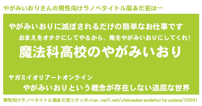| 女子向けラノベタイトル風あだ名 | 『やがみいおりアンティーク』 |