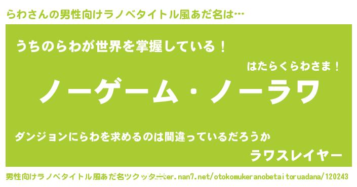 | ヒーロー風カッコイイあだ名 | 『慈愛の使者らわ』『幻影騎士ラワ』 |