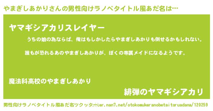 | ヘコむあだ名 | 『やまぎしあかり(小並感)』『レバニラ』 |