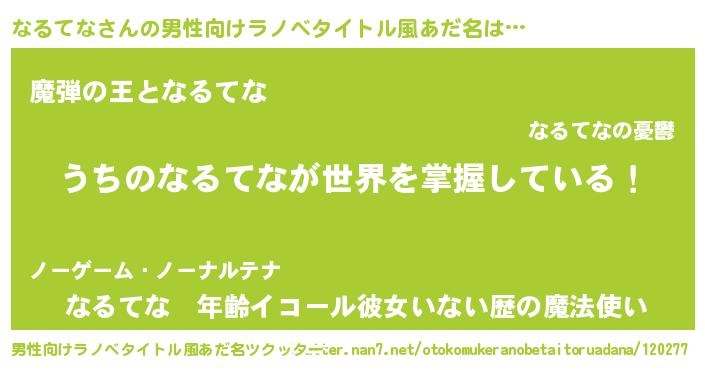 | 意味不明あだ名 | 『住所不定無職なるてな(47歳)』 |