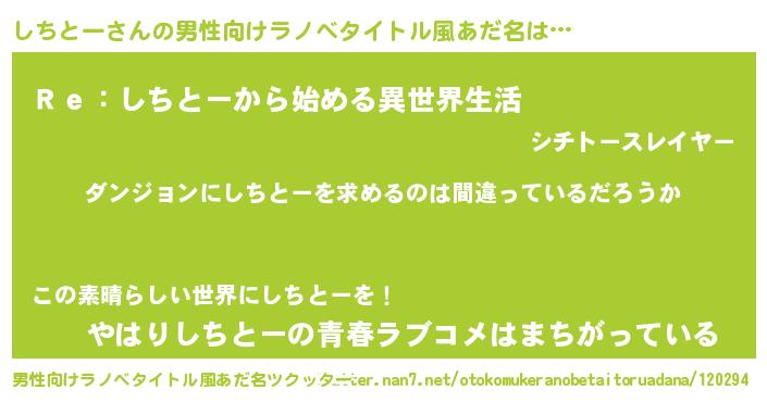 | 意味不明あだ名 | 『とにかく怪しいしちとー』 |