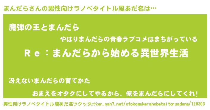 | 女子向けラノベタイトル風あだ名 | 『闇のまんだら』『まんだら伯爵の花嫁』 |