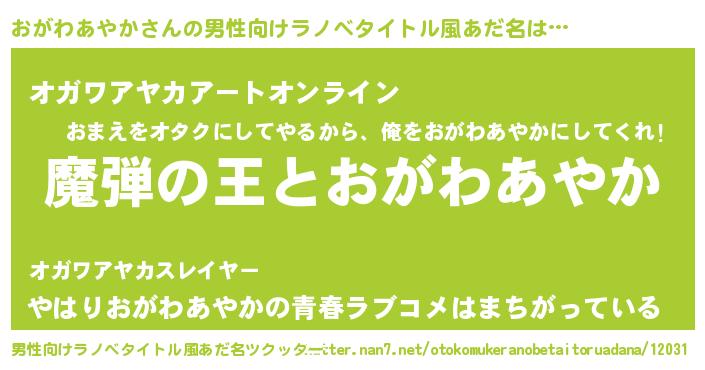 | 意味不明あだ名 | 『住所不定無職おがわあやか(8歳)』 |