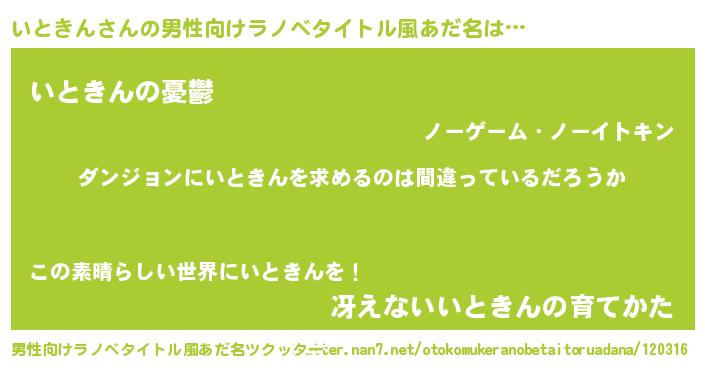 | 胡散臭い通販商品みたいなあだ名 | 『信頼と実績のネックレス…その名も「いときん」』 |