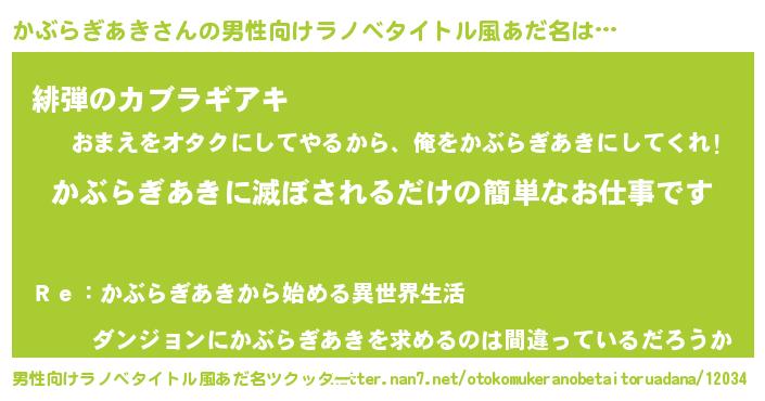 | ヘコむあだ名 | 『かぶぷりん』『かぶらぎあき(遠い目)』 |