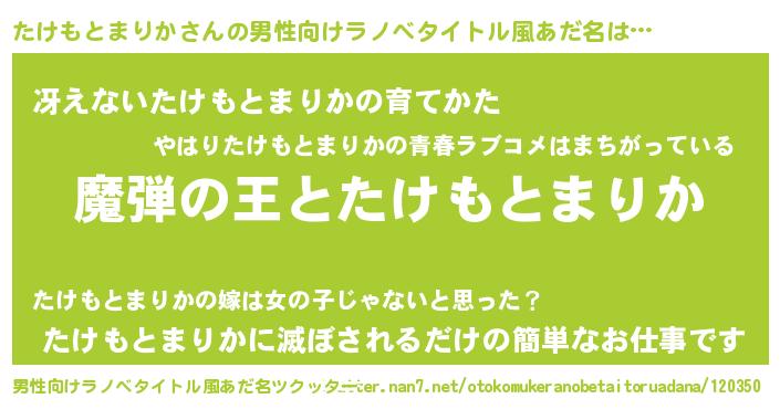 | 胡散臭い通販商品みたいなあだ名 | 『世界中を虜にした100年もののヴィンテージワイン…その名も「たけもとまりか」』 |